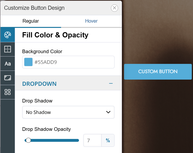 Click on the Custom Button and then Design to control the button's size and more.
