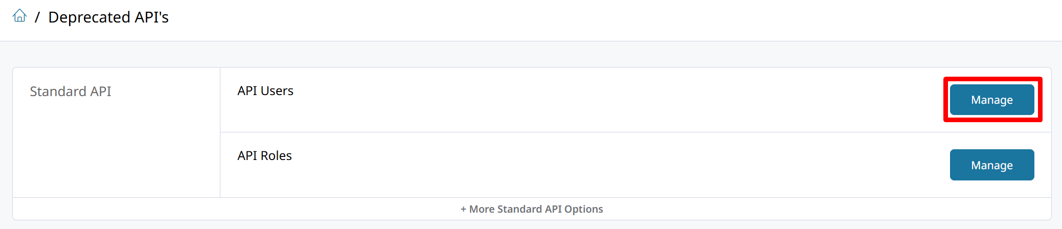 Navigate back to Deprecated APIs and manage API Users