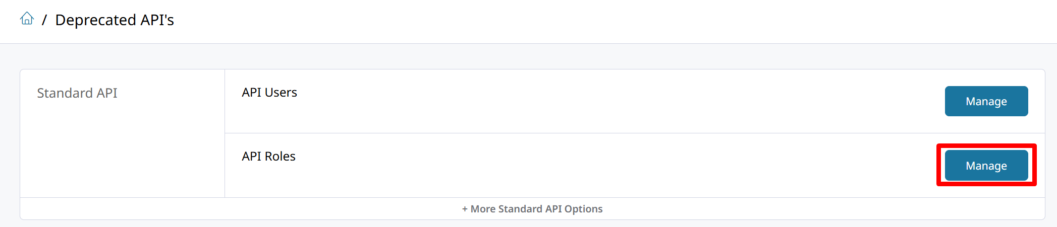 In Standard API, click on manage API Roles