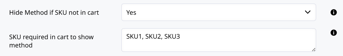 When set to Yes, the method will only appear if one of the SKUs in the list below is defined.