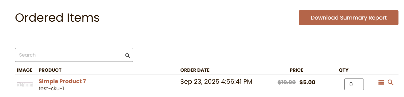 Ordered Items List on Storefront