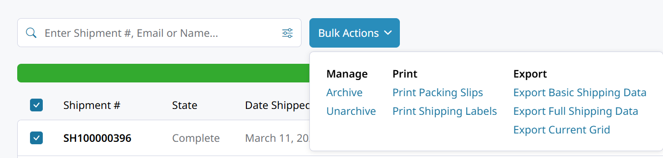 Go to the Orders or Shipments list.