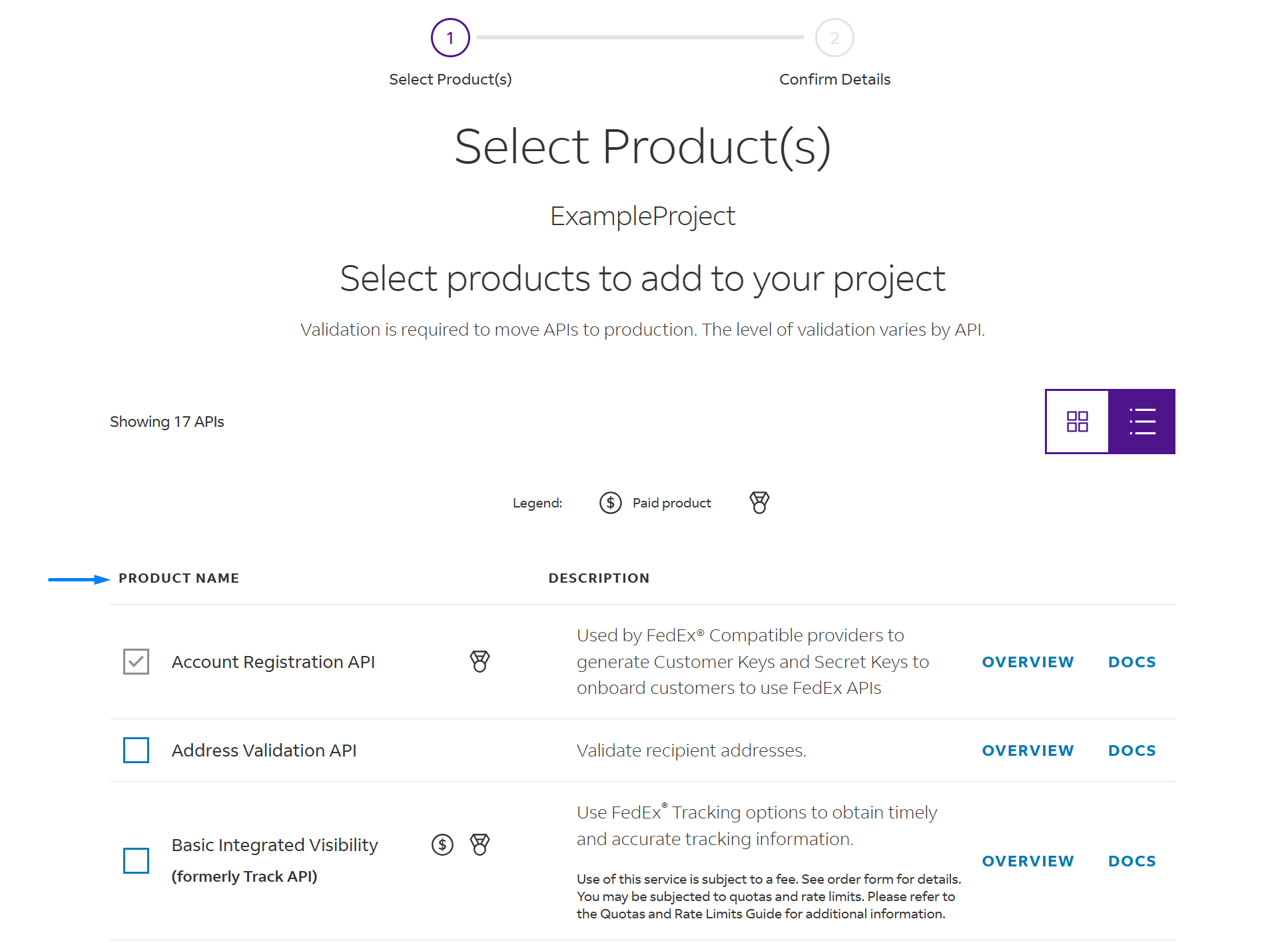 Select the API Products listed below: