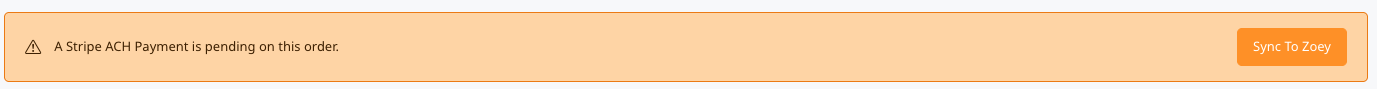 The Sync To Zoey button enables you to check the status of the Stripe ACH transaction to updated the Zoey Order without sending any webhooks!
